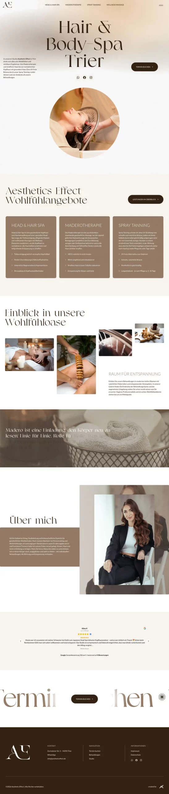 Die Kundin plante die Eröffnung ihres neuen Spa- und Wellnessstudios in Trier. Damit der Start rundum gelingt, sollte eine moderne, funktionale Website entstehen, die den hohen Ansprüchen ihrer eleganten Einrichtung und der professionellen Behandlungen gerecht wird. Ein stimmiges, harmonisches Gesamtbild war ihr dabei besonders wichtig.